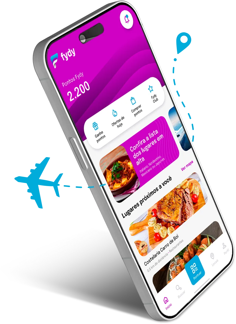 Dica extra: planeje para fazer suas compras do dia a dia nos estabelecimentos credenciados FYDY. Assim, aquele seu gasto se transforma em pontos pra te ajudar a chegar mais rápido no próximo destino.
