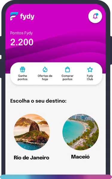 A FYDY é o único programa de recompensas do Brasil feito pra quem ama viajar, focado em trocar pontos por viagens inesquecíveis.
